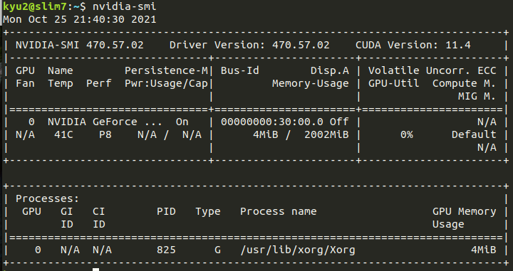 터미널에 nvidia-smi를 입력하면 다음과 같은 화면이 나타난다.