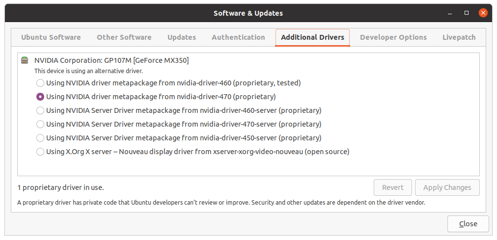 $ sudo apt install nvidia-driver-470