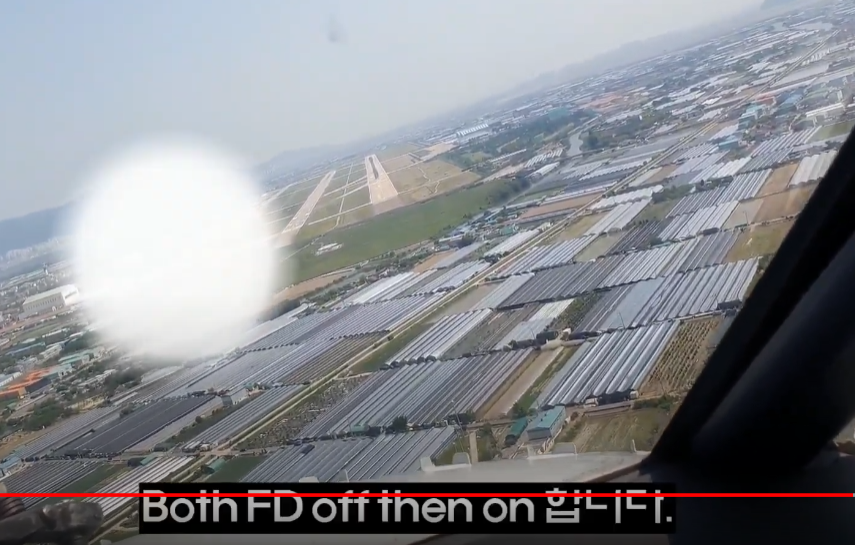 마지막 파이널에 활주로가 눈에 들어오면 자동조종장치를 OFF 하고 수동으로 최종접근을 시도한다.