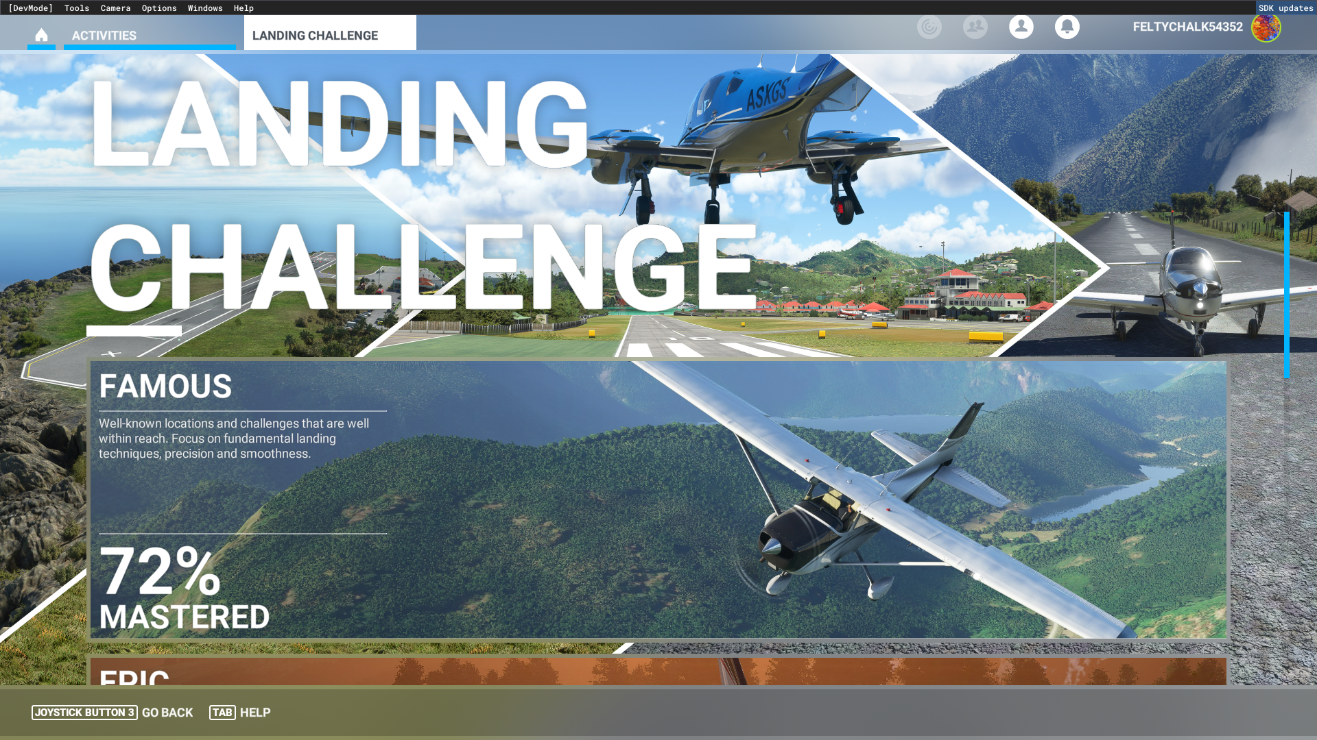 다양한 착륙 도전을 수행할 수 있는데 가장 유명한 공항부터 난이도 높기로 악명높은 공항들, 그리고 악기상을 재현하고 있다.