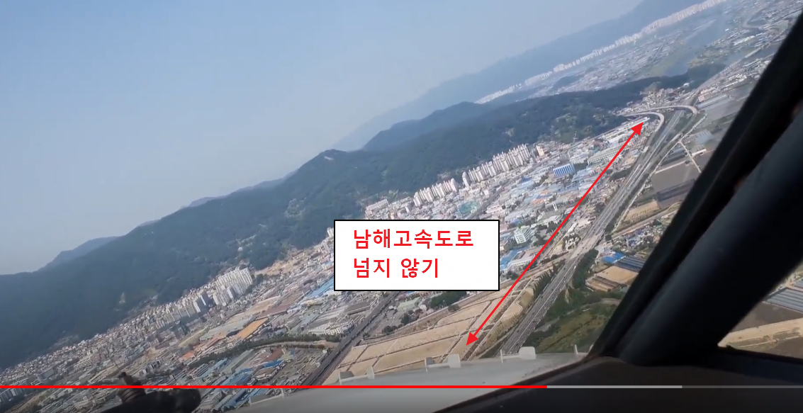활주로 시단을 지나 남해 고속도로가 보이면 베이스 턴을 시작하는데 베이스가 남해고속도로를 침범하면 안된다고 한다.