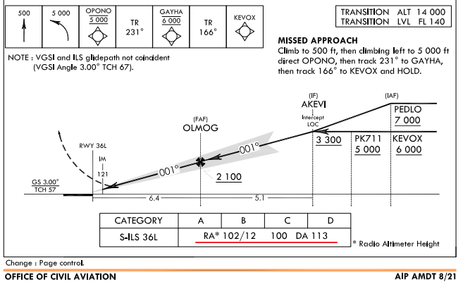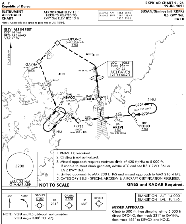 매우 평범하고 일반적인 ILS 절차이다. CAT II 장비를 보유하여 MDA가 100피트밖에 안된다. 100피트 안에서 활주로가 보이기만 하면 착륙할 수 있다.
