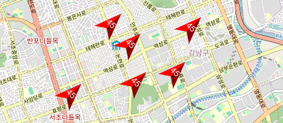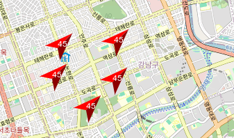 아래 그림은 지도에 표시된 마커에 회전된 sgv 아이콘이 적용된 화면이다.