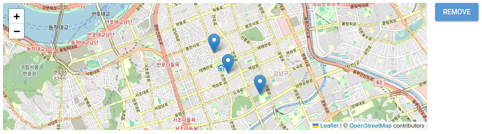 이제 마커를 추가했다가 remove버튼을 누르면 하나씩 마커가 제거되는 것을 확인할 수 있다.